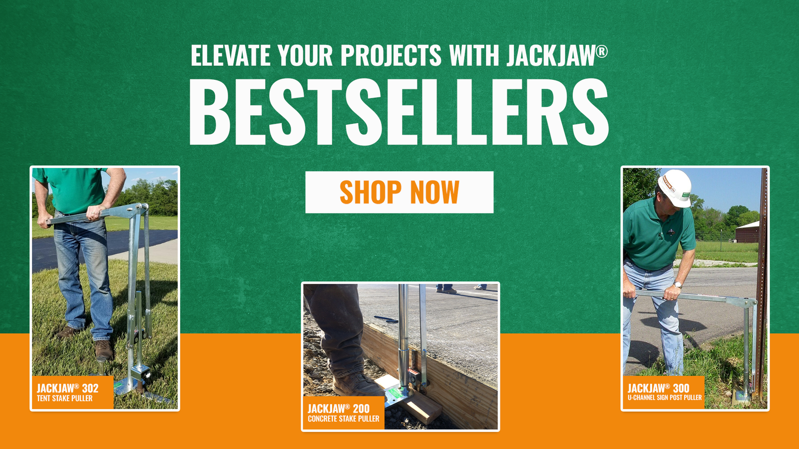 Designed and patented by a concrete contractor, JackJaw® extractors make an easy task of pulling stakes and posts. With a couple pumps of the handle, stakes and posts will break loose. The JackJaw® puller is our customers' favorite tool to use because it pulls concrete stakes, pulls tent stakes, pulls sign posts, pulls ground rods, or just about anything else that's in the ground with ease.